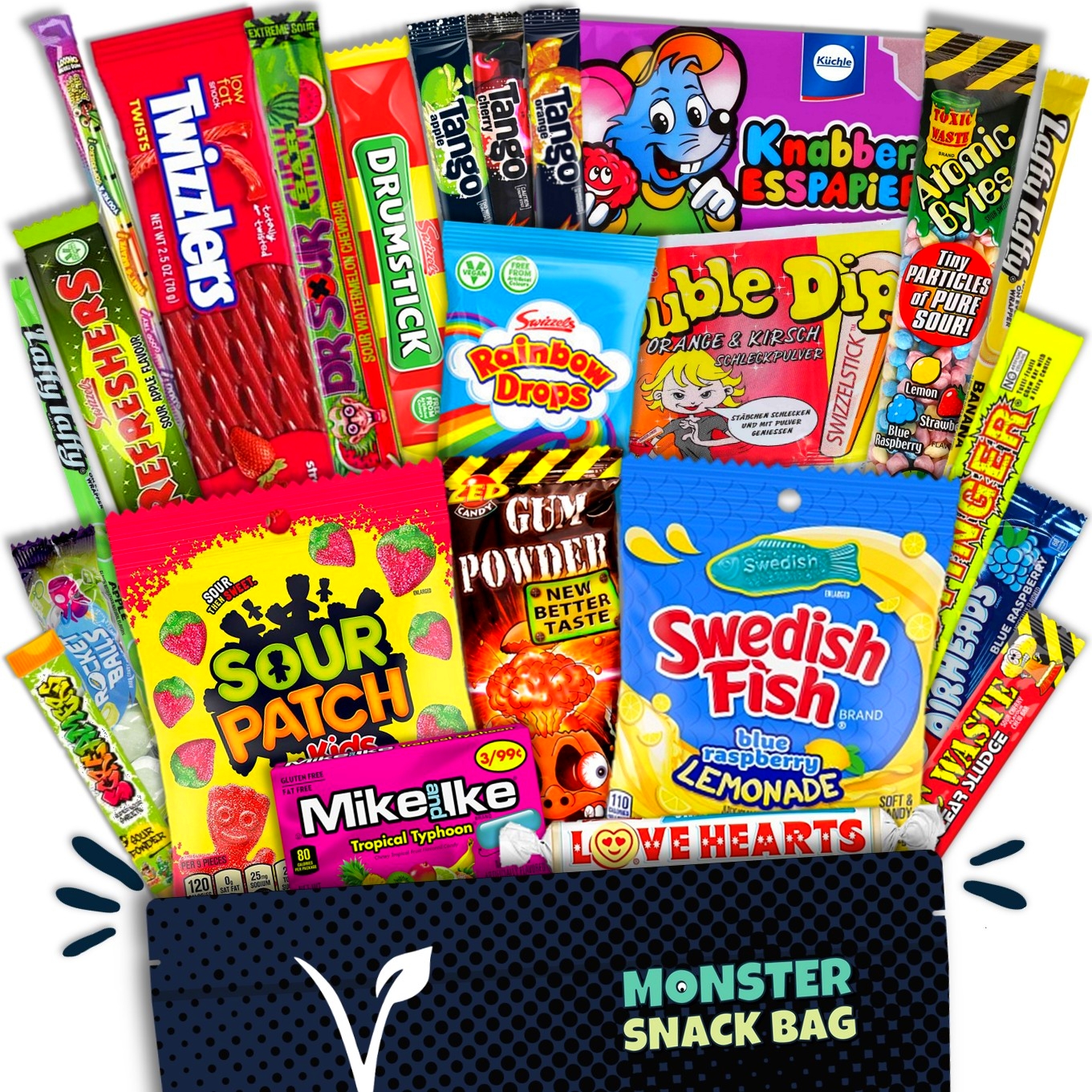 👍🏼 QUALITÄT: frische Süßigkeiten mindestens 4 Wochen haltbar, nur von bekannten Marken wie Swizzles, Dweebs (ähnlich Nerds), Sour Patch Kids, Head Bangers, Chupa Chups uvm.
